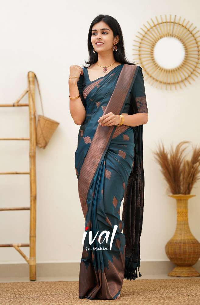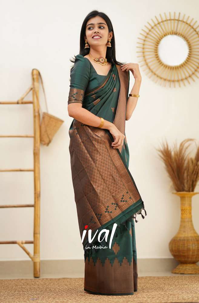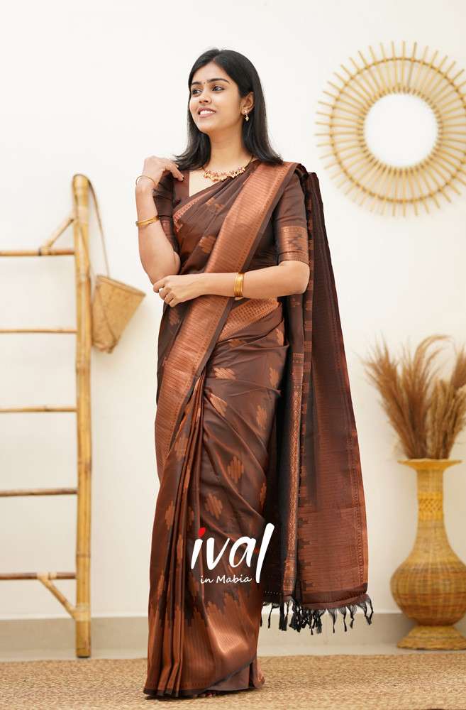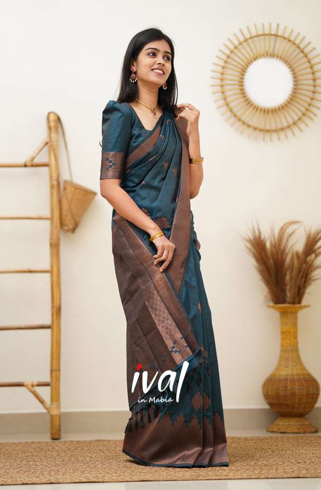 STUNNING COLOUR SAREE WITH HEAVY BROCADE BLOUSE