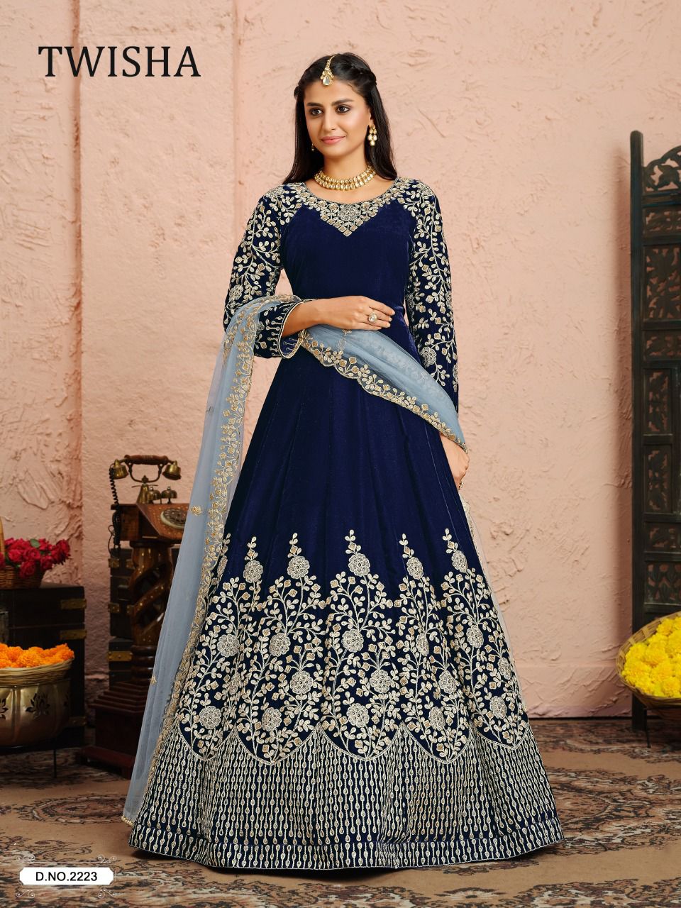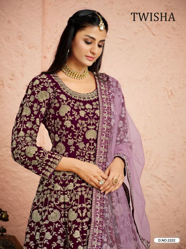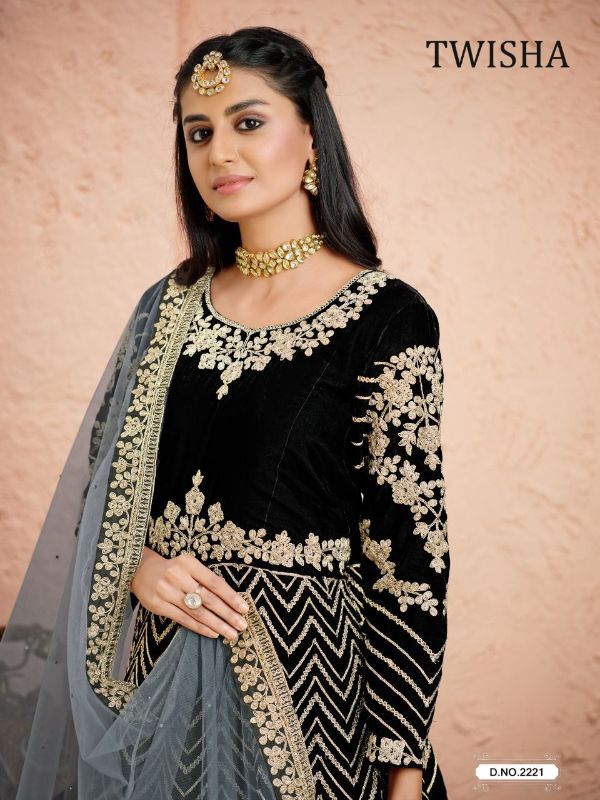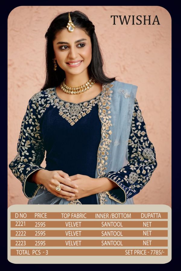 Aanaya Presents Twisha Vol-22 2221 - 2223 Series Pure Velvet With Embroidery Work Fancy Party Wear Gown Collection