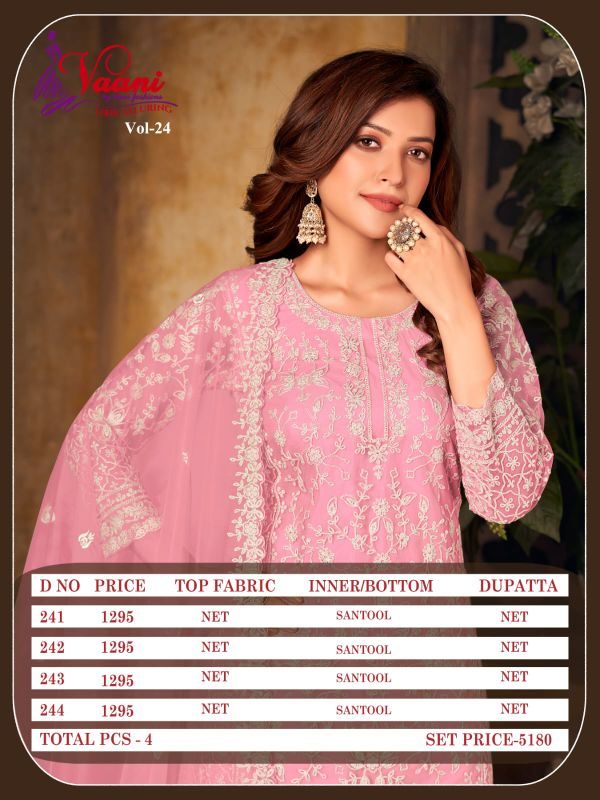Aanaya Presents Vaani Vol-24 Dno 241 - 244 Series Indian Designer Party Wear Salwar Kameez Suit At Wholesale Price