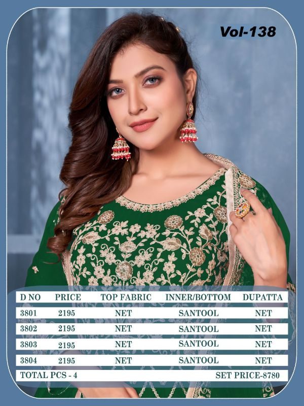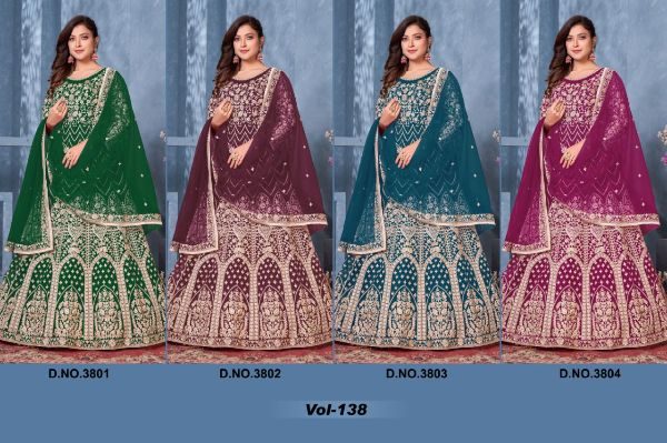 Aanaya Presents Vol-138 3801 To 3804 Series I?dian Women Heavy Anarkali Salwar Kameez Suit At Wholesale Price