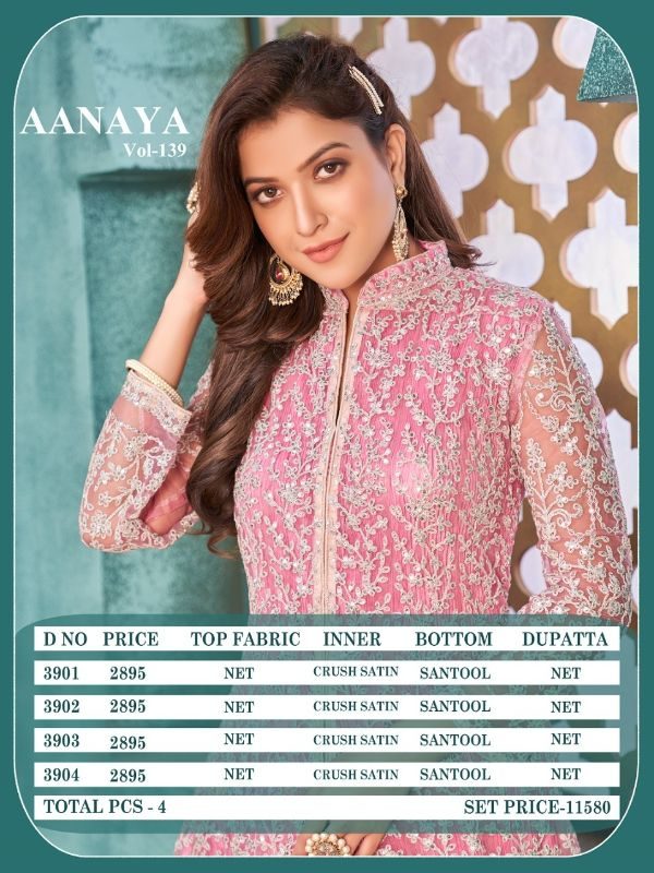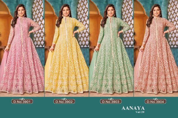 Aanaya Presents Vol-139 3901 To 3904 Series Indian Heavy Party Wear Salwar Kameez Suit At Wholesale Price