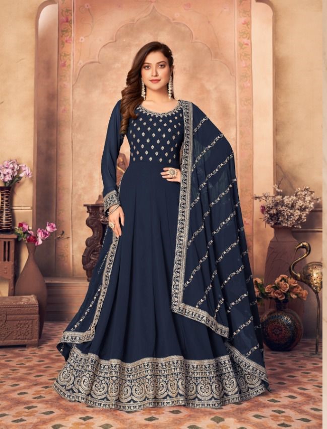 Latest Designer gown Collection. Exclusive with Foil & Thread Embroidery Work gives a Fashionable Look, High sensed style and luxury makes you ready for envious glazes and very rich & Royal in the Party, Function, Event etc.