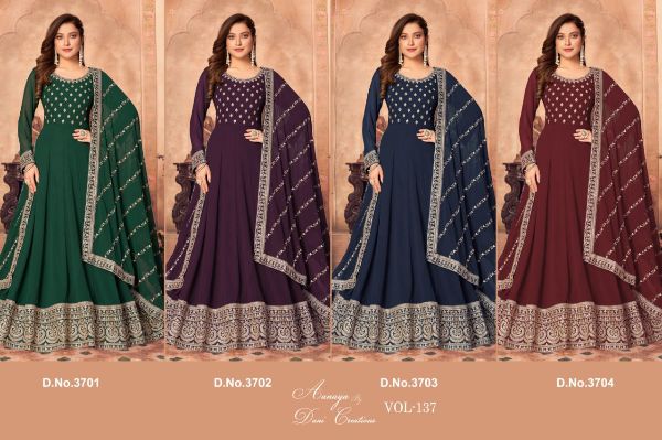 Aanya Presents Aanaya Vol-137 3701-3704 Series Faux Georgette Fancy Long Gown Collection