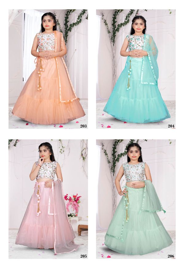 Aaradhna Presents Aaradhna Vol-24 203-206 Series Net With Designet Embroidery And Sequin Work Kidwear Lehenga Collection