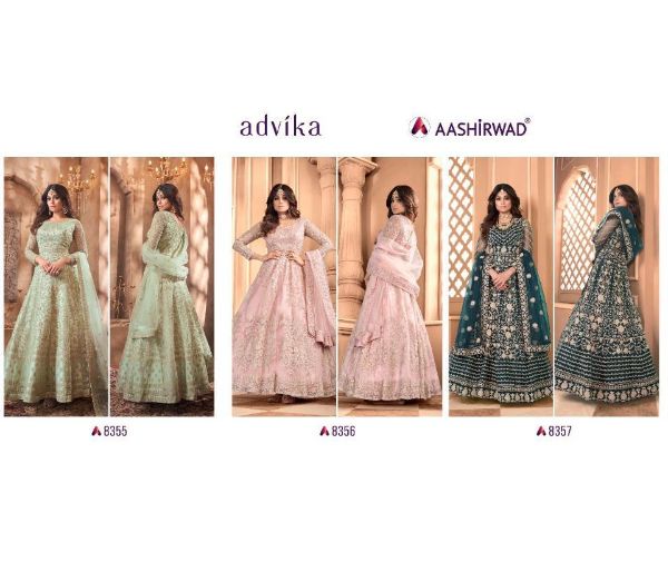 Aashirwad Presents Advika 8354-8357 Series Butterfly Net With Embroidery Work Gown Collection