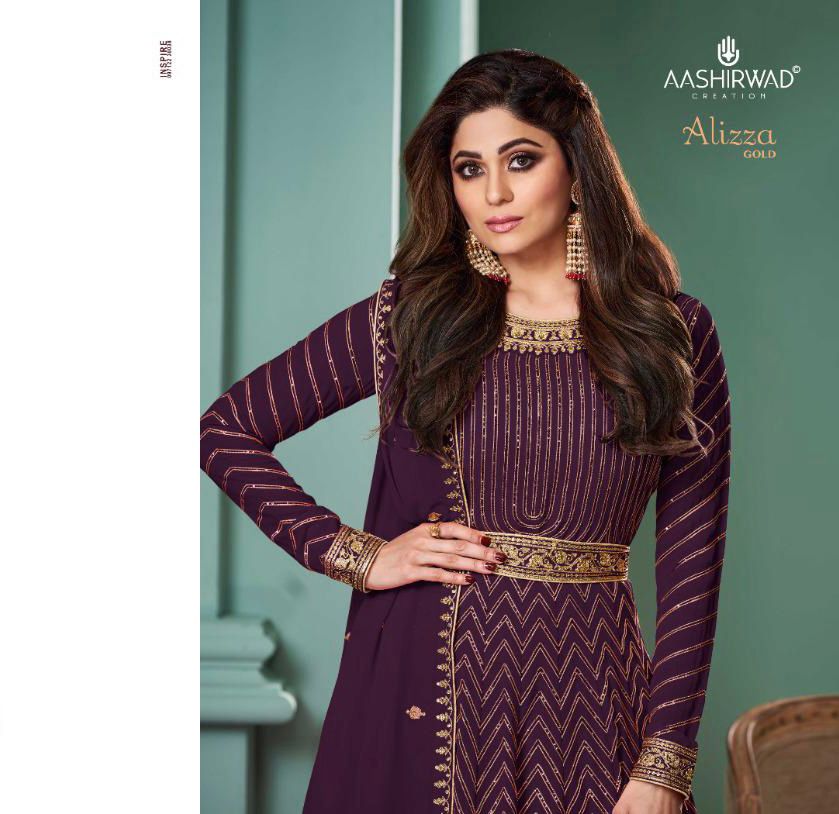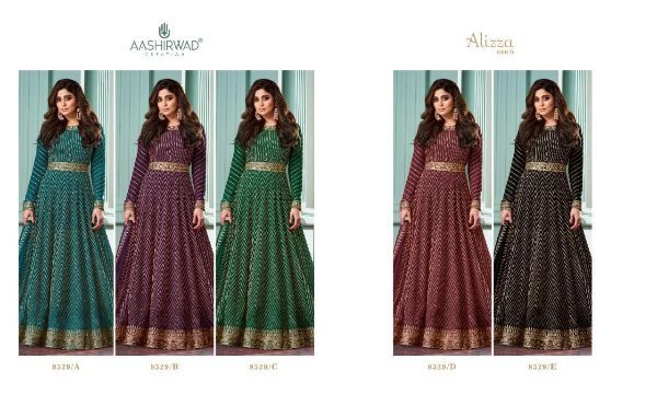 Aashirwad Presents Alizza Gold 8529a - 8529e Series Designer Indian Anrakali Salwar Suit Party Festive Wear At Wholesale Price