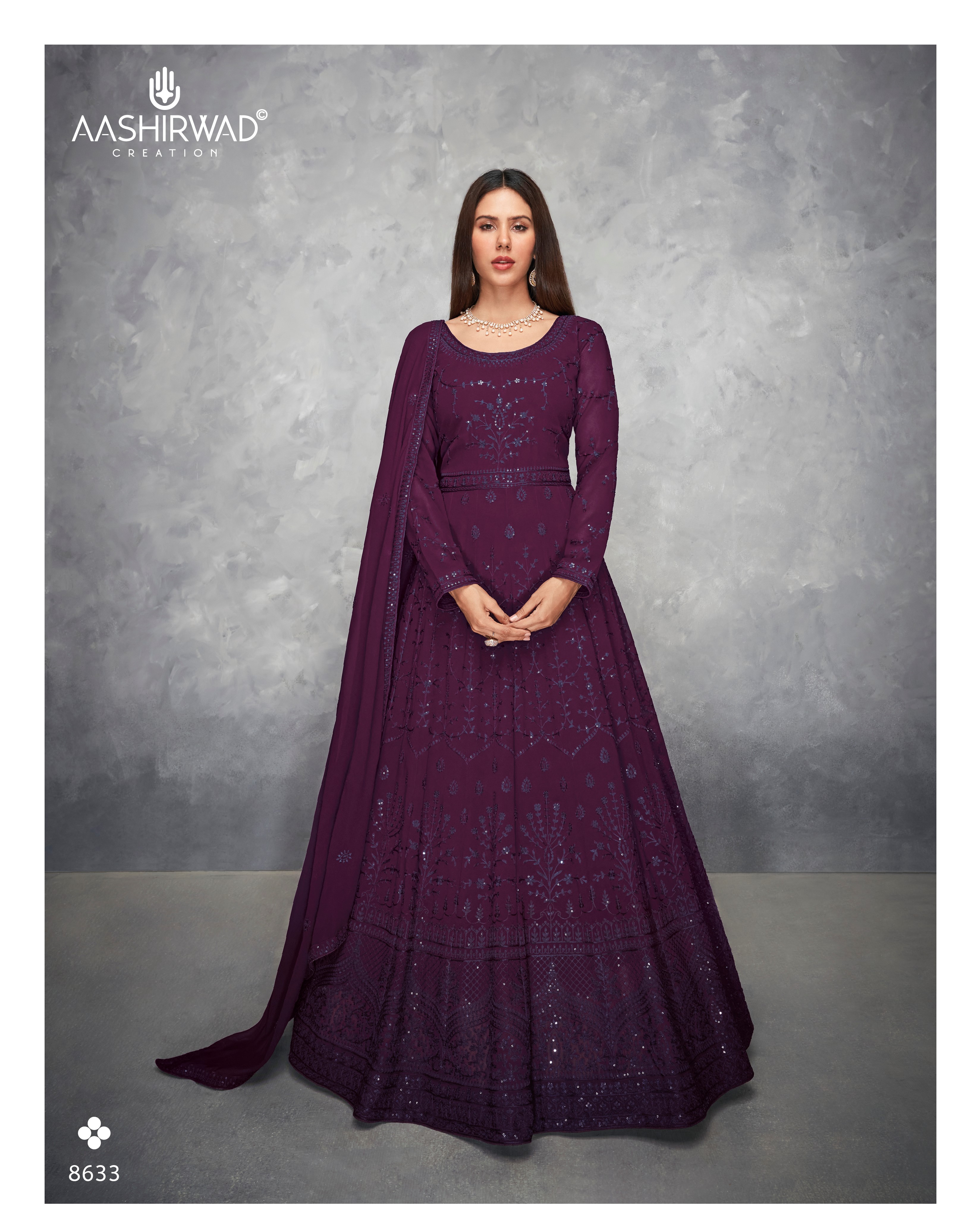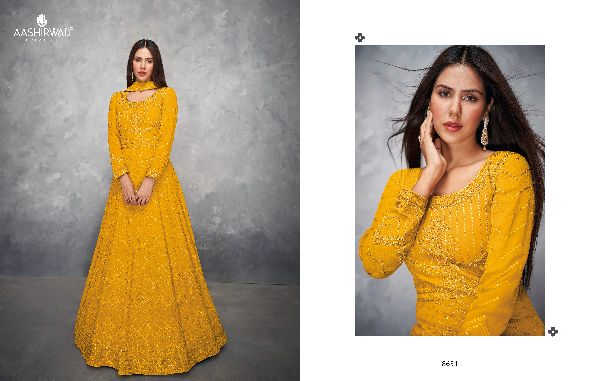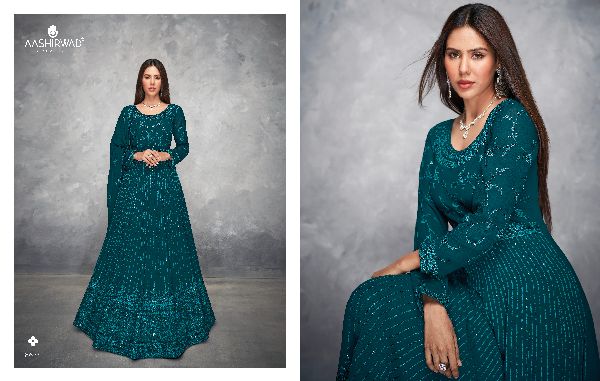 Aashirwad Presents Anamika 8631-8635 Series Real Georgette Long Gown Collection#1811