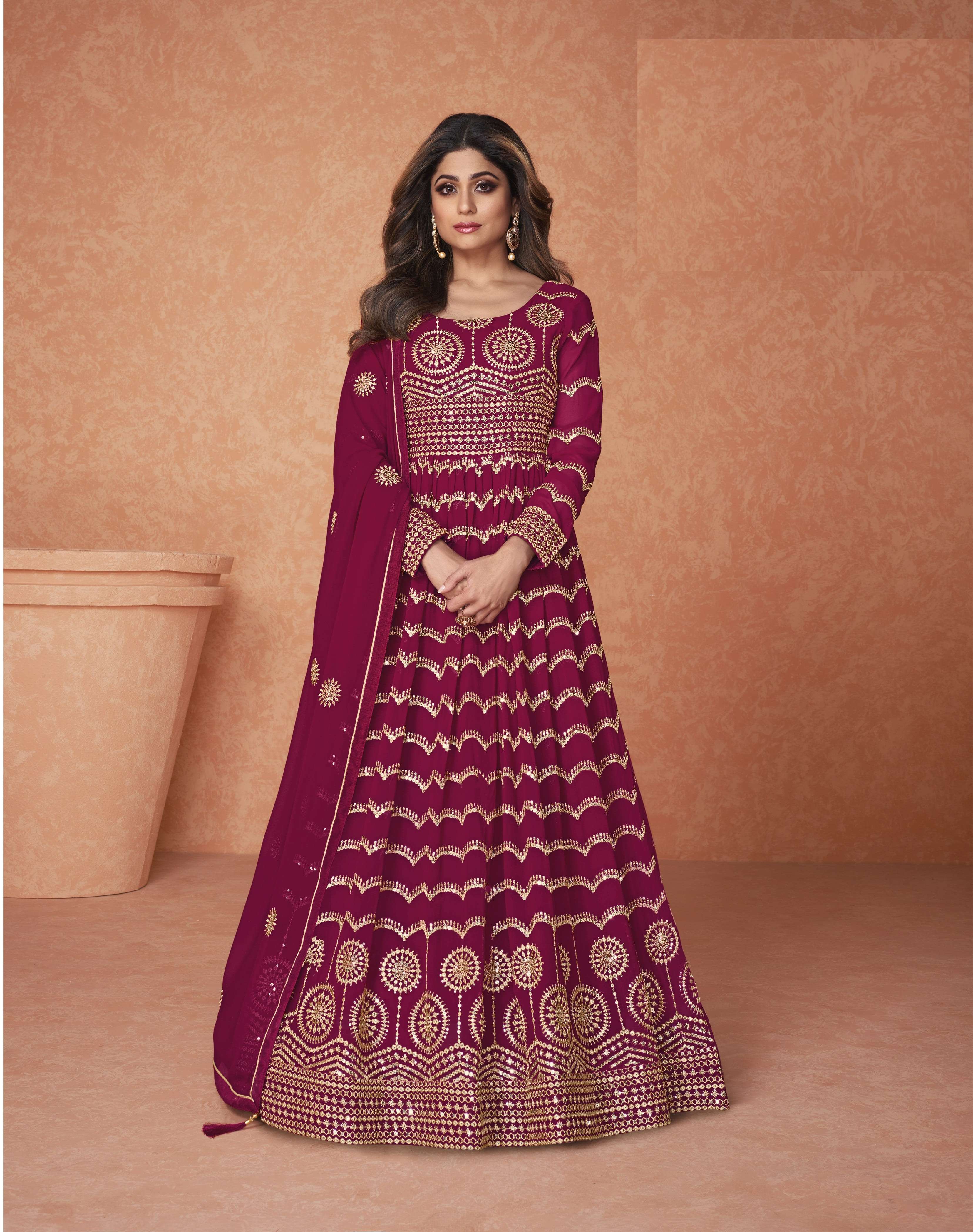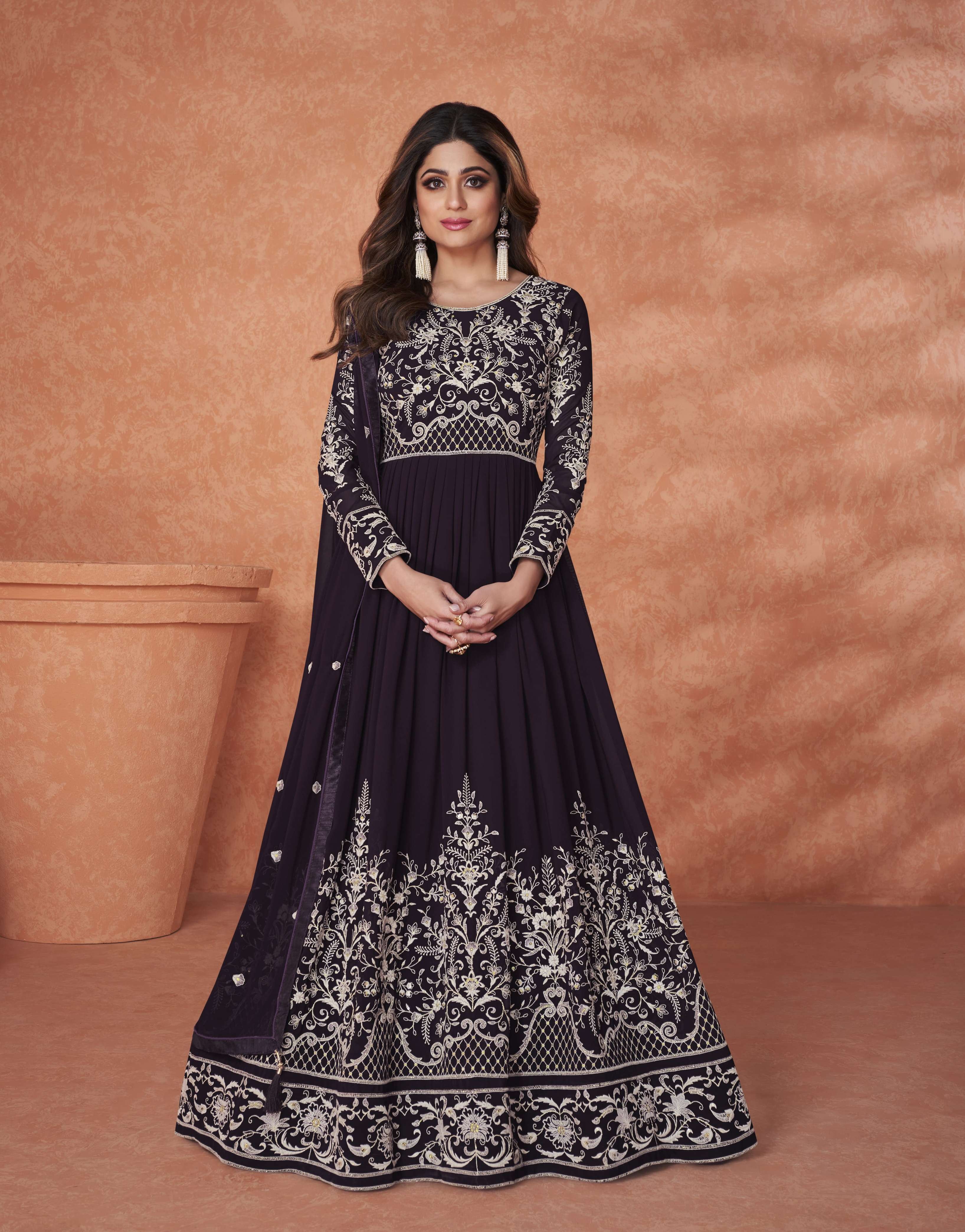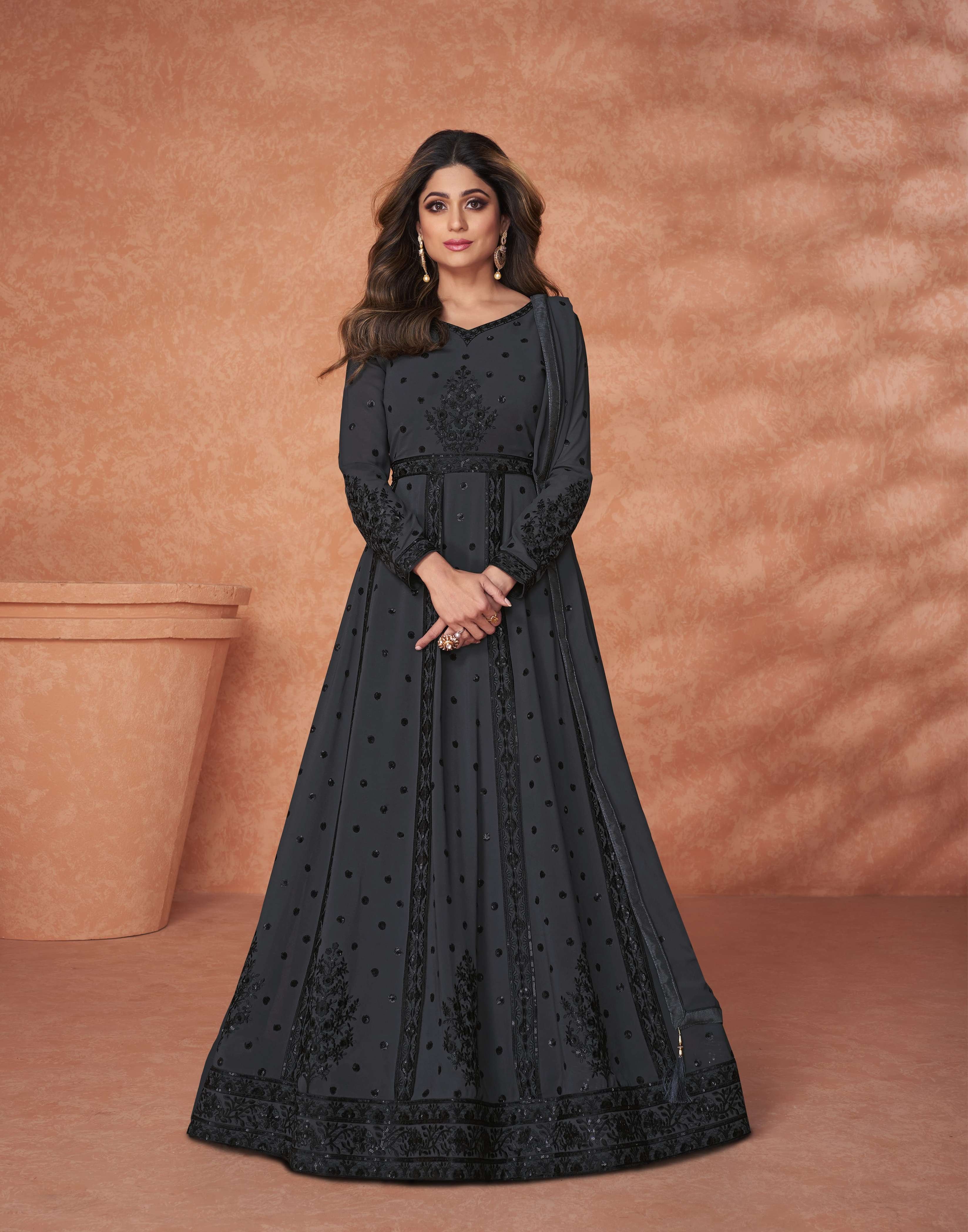 Latest Designer Anarkali Salwar Kameez Suit Collection. Exclusive with Embroidery Work gives a Fashionable Look, High sensed style and luxury makes you ready for envious glazes and very rich & Royal in the Party, Function, Event etc.