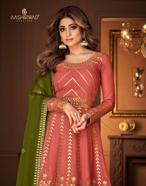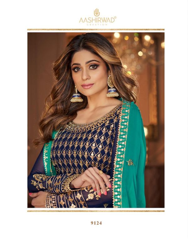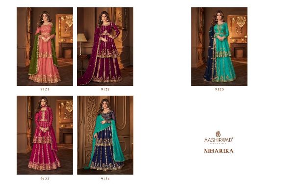 Aashirwad Presents Niharika 9121-9125 Series Real Georgette With Work Salwar Suit Collection