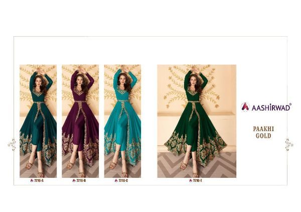 Aashirwad Presents Paakhi Gold 7216a To 7216e Series Georgette Designer Salwar Suits At Wholesale Price