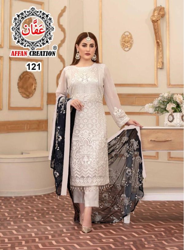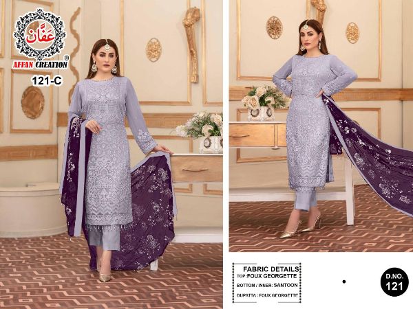 Affan Creation Dn 121a-c Series Faux Georgette With Heavy Embroidery Sequence Work & Pearl Moti Pakistani Suit Collection