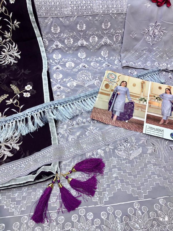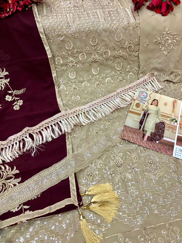 Latest Designer pakistani suits Collection. Exclusive with Foil & Thread Embroidery Work gives a Fashionable Look, High sensed style and luxury makes you ready for envious glazes and very rich & Royal in the Party, Function, Event etc.