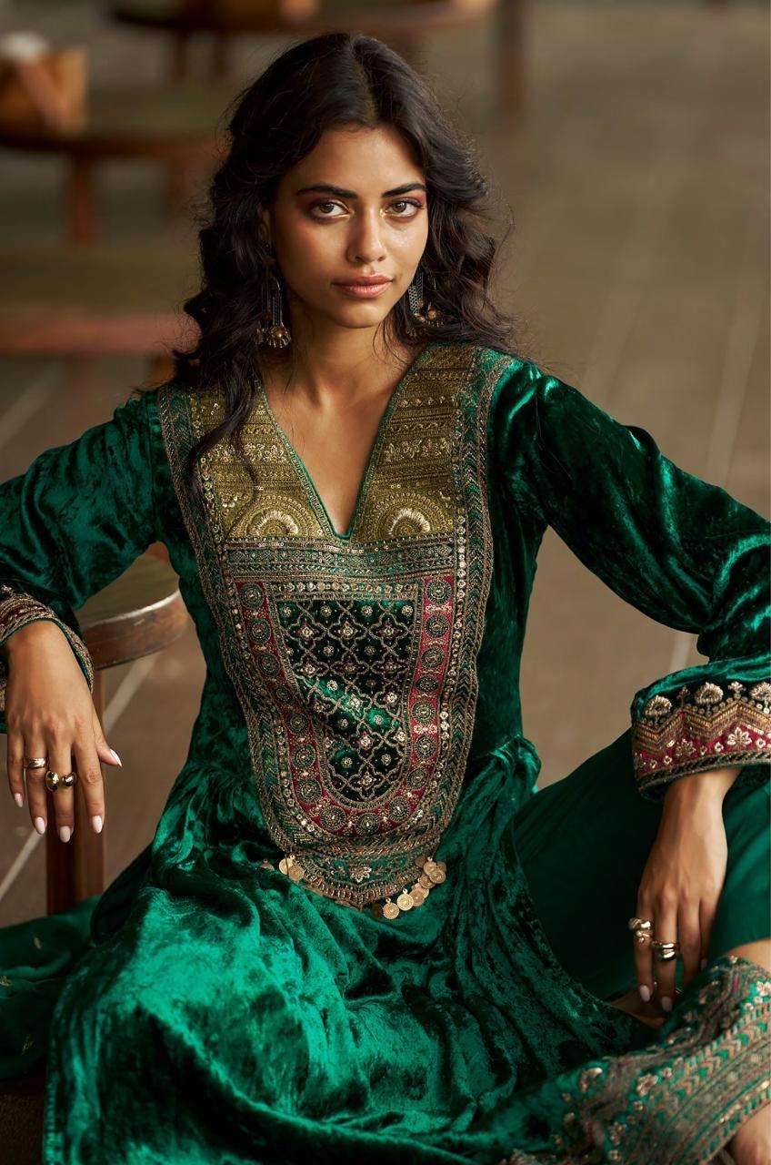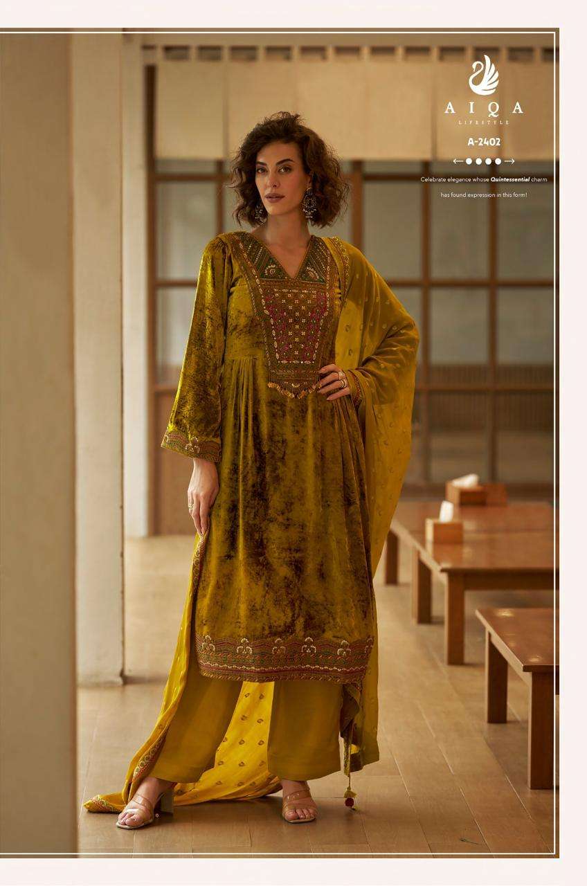 | Catalogue: | AIQA QEAILZ PURE VISCOSE VELVET SUIT WITH FANCY WORK & HANDWORK |