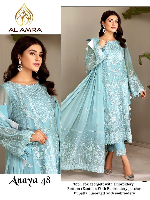 Al Amra By Zf Presents Anaya Zf 48 Fox Georgette With Embroidery Work Pakistani Suits Collection#1982