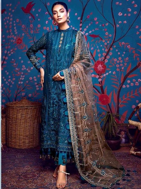Latest Designer pakistani suit Collection. Exclusive with Foil & Thread Embroidery Work gives a Fashionable Look, High sensed style and luxury makes you ready for envious glazes and very rich & Royal in the Party, Function, Event etc.
