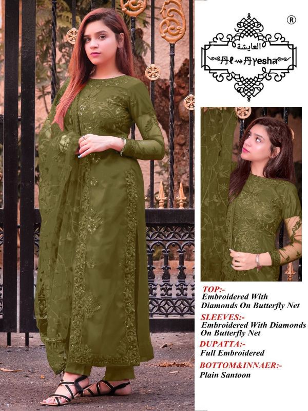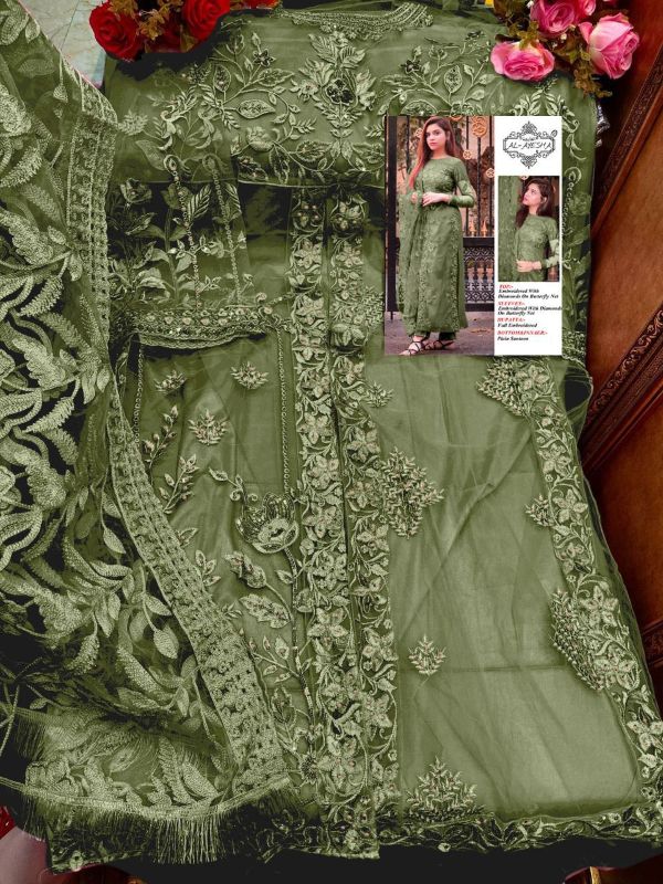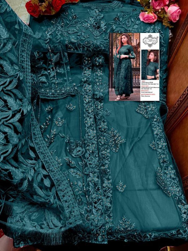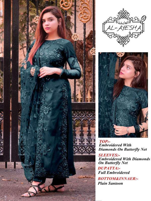 Al Ayesha Presents Butterfly Net With Embroidered With Diamonds Pakistani Suit Collection
