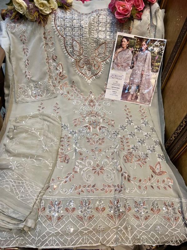 Latest Designer pakisatni suit Collection. Exclusive with Foil & Thread Embroidery Work gives a Fashionable Look, High sensed style and luxury makes you ready for envious glazes and very rich & Royal in the Party, Function, Event etc.