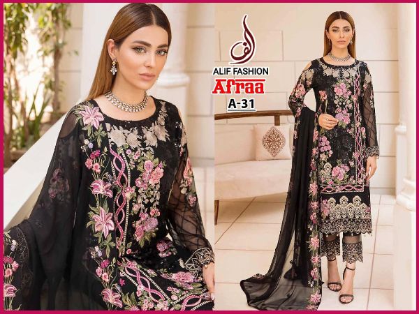 Alif Fashion Presents Afraa A-31 Faux Georgette With Heavy Embroidery Sequence Work And Heavy Hand Work Pakistani Suits Collection#1550