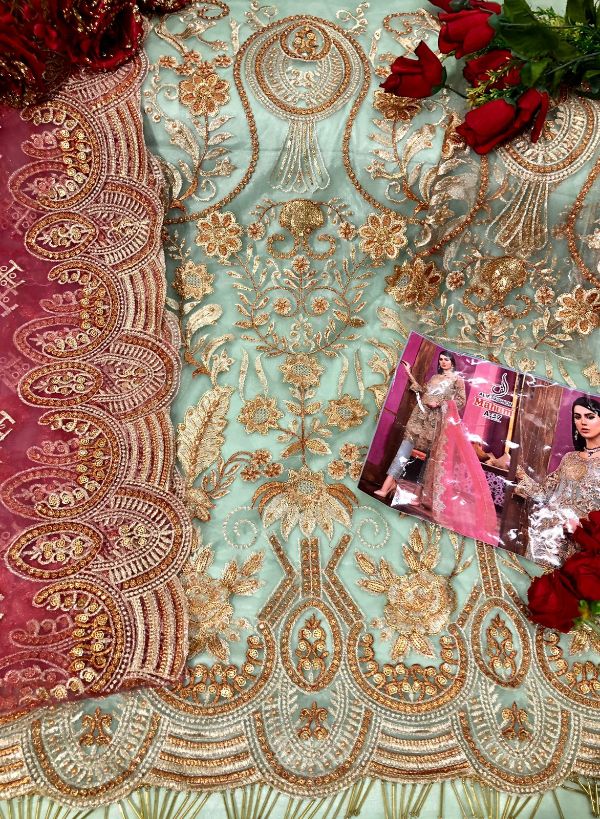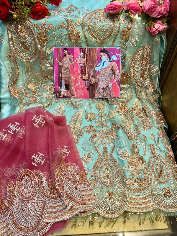 Alif Fashion Presents Mahum A37 Butterfly Net With Heavy Embroidery Work Hand Work And Fancy Lace Pakistani Collection