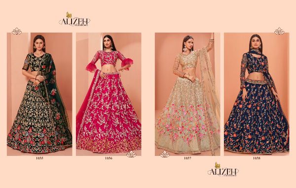 Alize Presents Weeding Affair Vol-2 1035-1038 Series Net And Thread Embroidery Beautiful Lehenga Collection