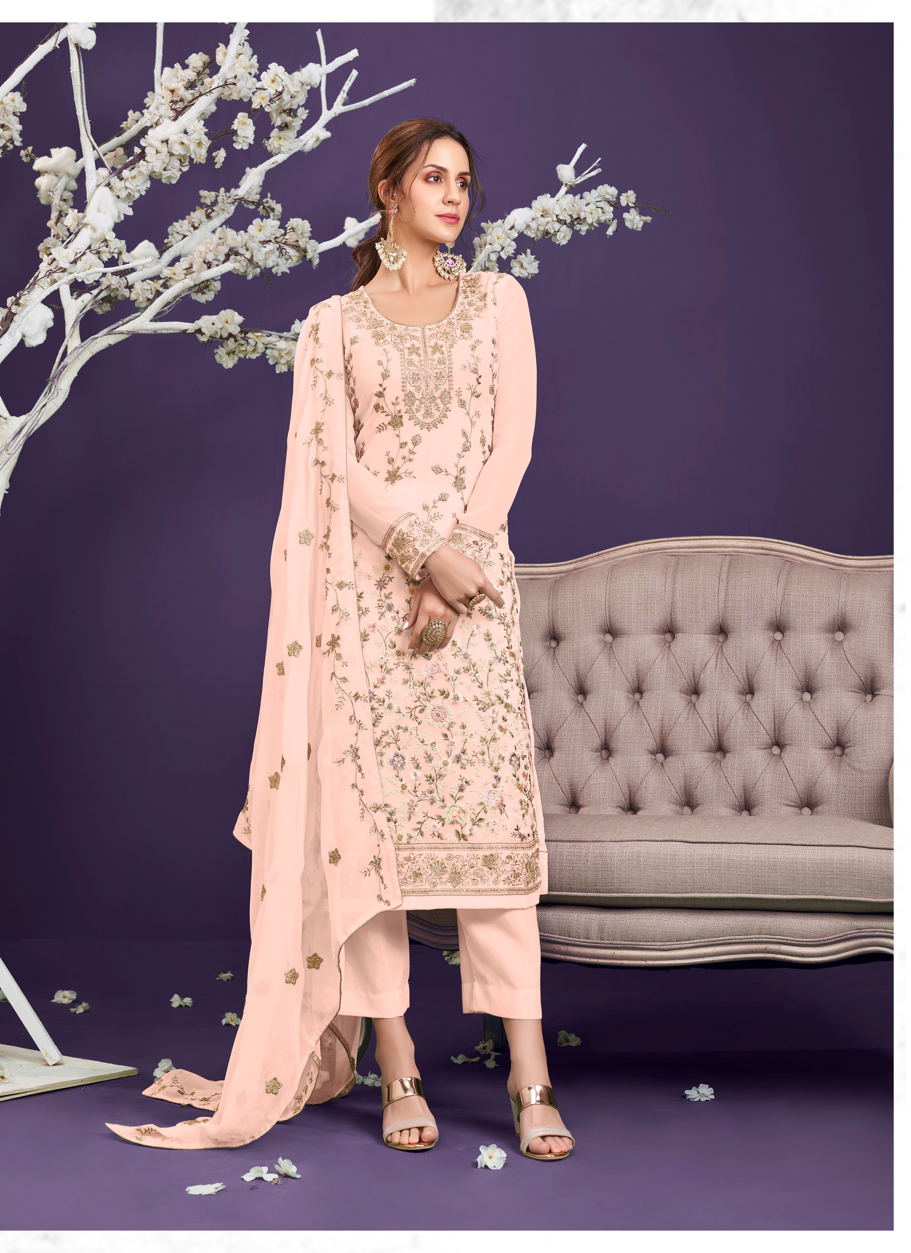 Latest Designer salwar suit Collection. Exclusive with Foil & Thread Embroidery Work gives a Fashionable Look, High sensed style and luxury makes you ready for envious glazes and very rich & Royal in the Party, Function, Event etc.