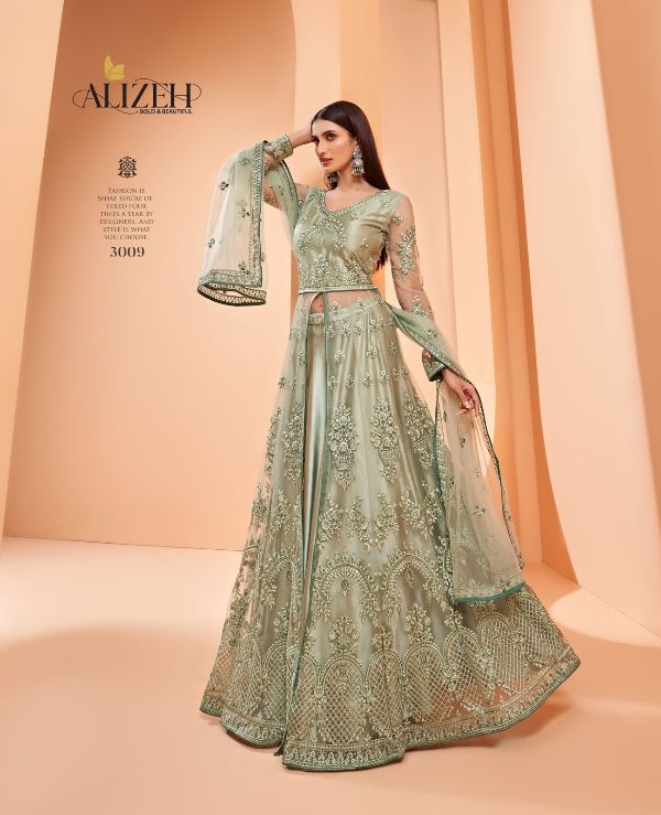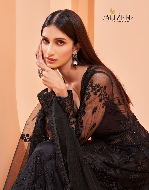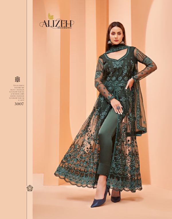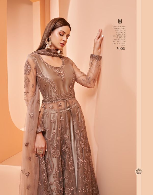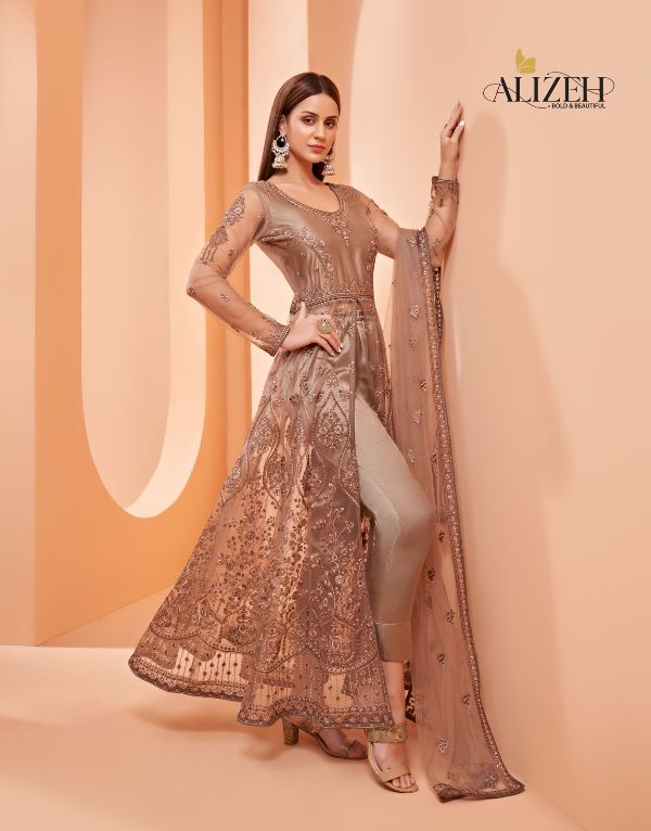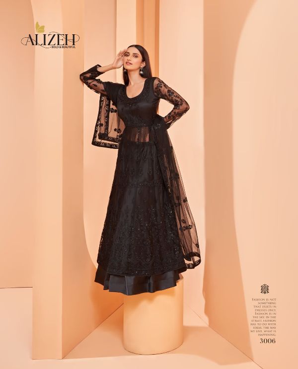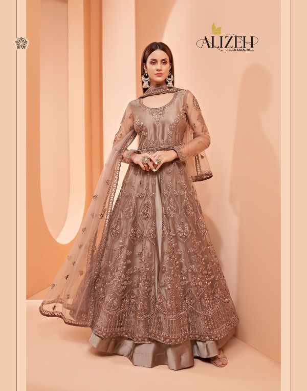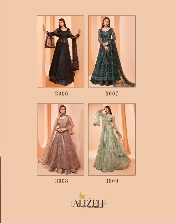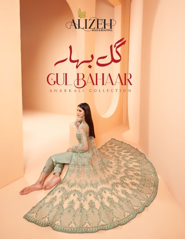 Alizeh Presents Gul Bahaar Vol-1 3006-3009 Series Butterfly Net With Work Long Gown Collection#1829