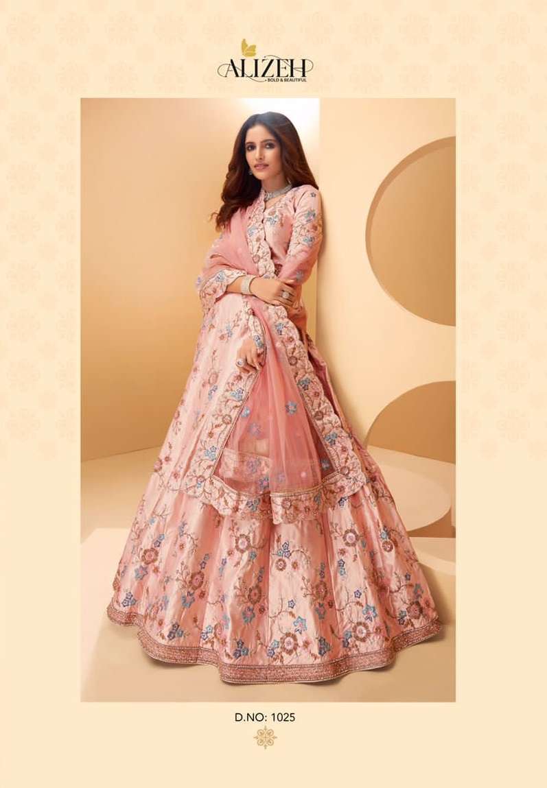 ALIZEH PRESENTS SANGEET DNO 1025 INDIAN WOMEN DESIGNER PEACH LEHENGA CHOLI BRIDAL PARTY WEDDING WEAR COLLECTION