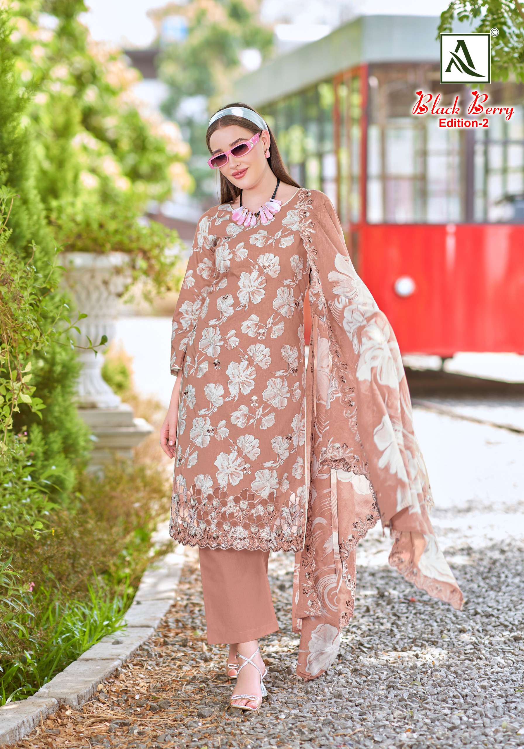 | Catalogue: | Alok Suit BLACK BERRY 2 100% Pure Cambric Cotton Suit with Embroidery Work |