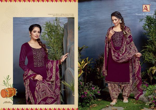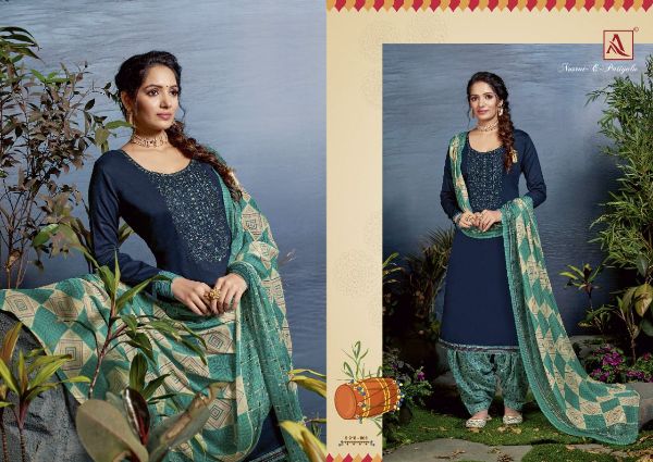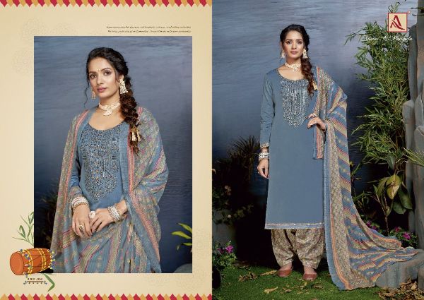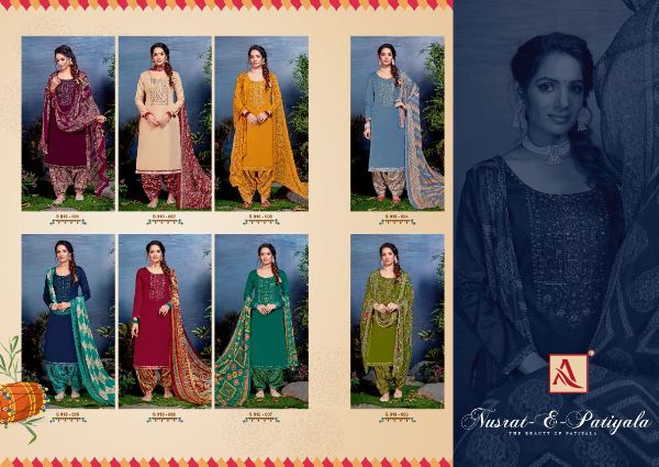 Alok Suit Presents Nusrat-e-patiyala 918-001-918-008 Series Pure Jam Cotton Solid With Embroidery Work Salwar Kameez Collection