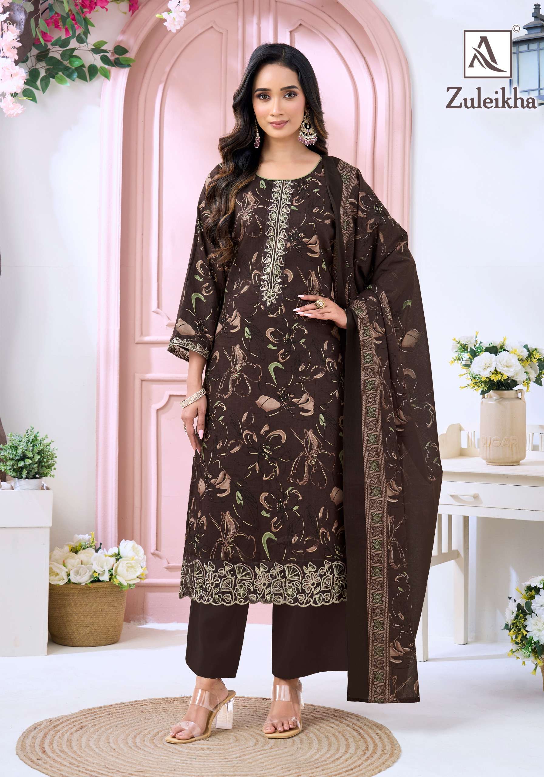 | Catalogue: | Alok Suit ZULEIKHA Pure Zam Cotton Foil Print With Fancy Embroidered Suit collection for resellers |
