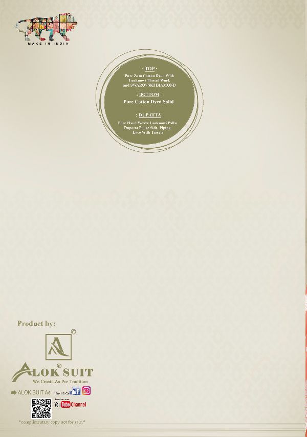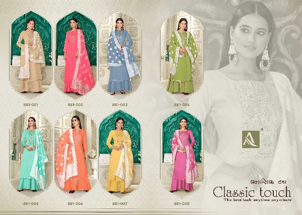 Alok Suits Presents Classic Touch 881-001 - 881-008 Series Pure Cotton With Thread Work Salwar Suit Collection Single Available#1912