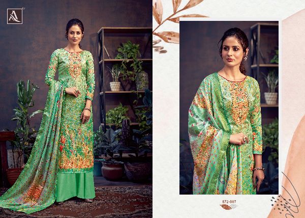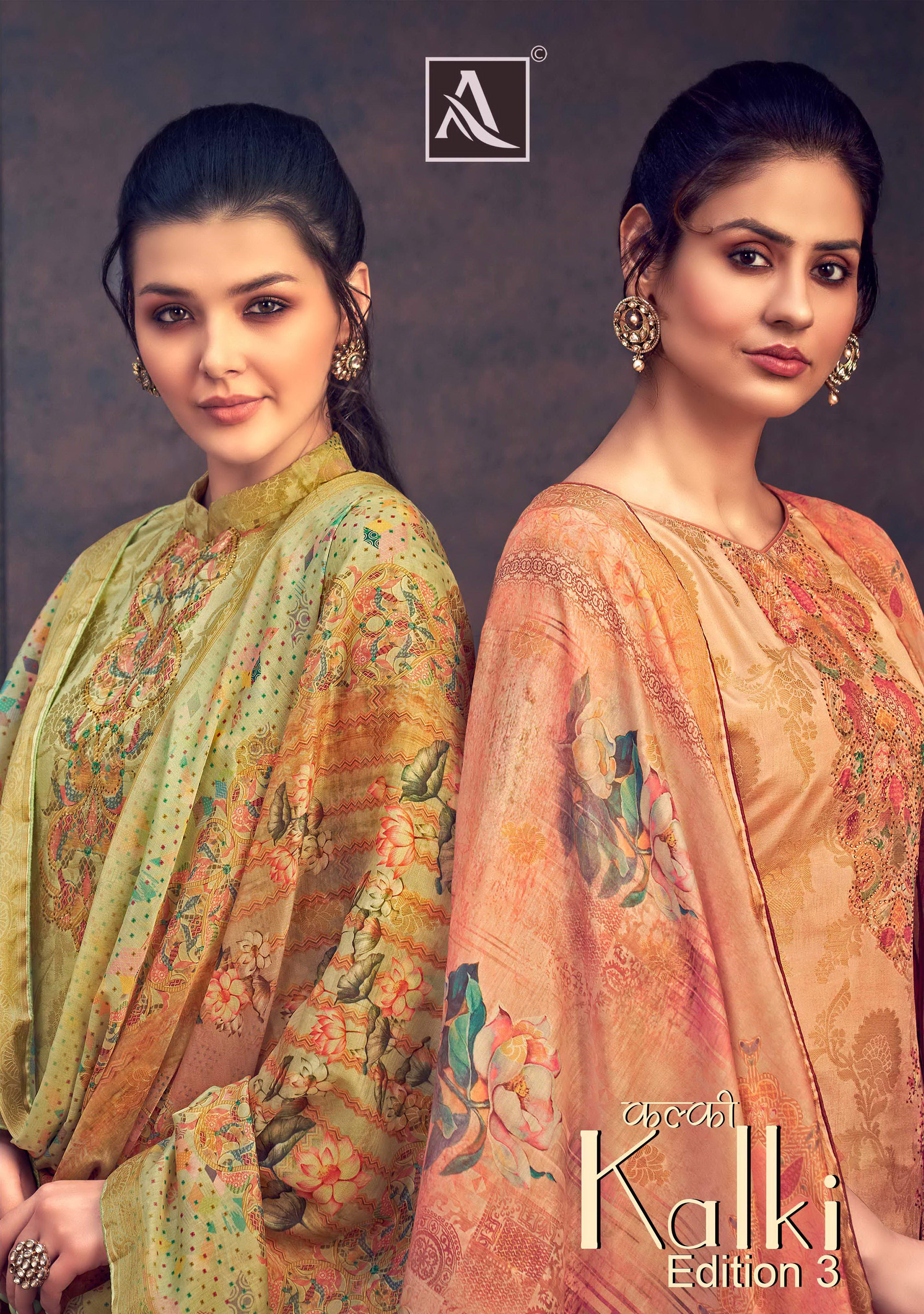 Alok Suits Presents Kalki-3 872-001 - 872-008 Series Pure Hand Weave Banarasi Jacquard Digital Print Salwar Suit Collection Single Av