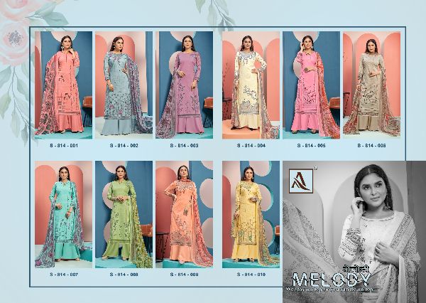 Alok Suits Presents Melody 814-001 - 814-010 Series Pure Cambric Cotton Fancy Print Salwar Suit Collection Single Av
