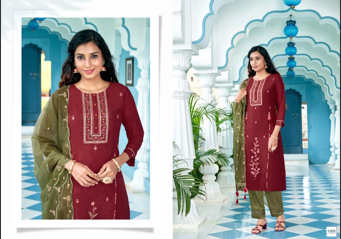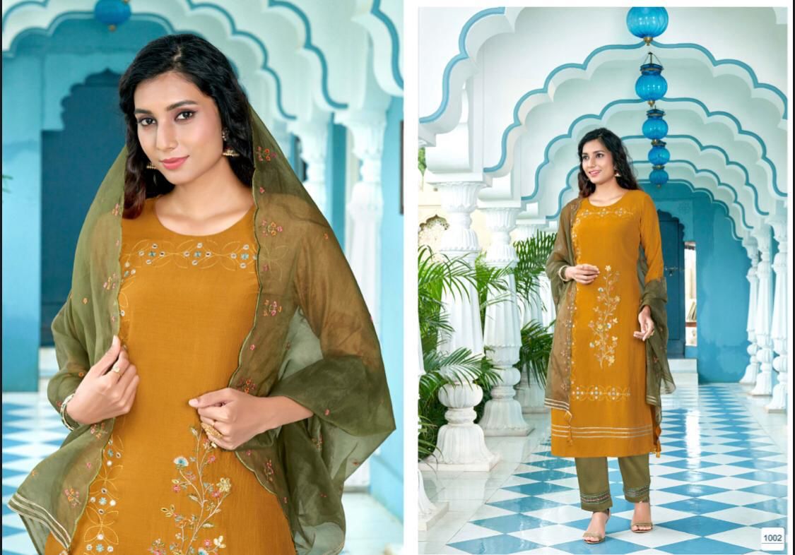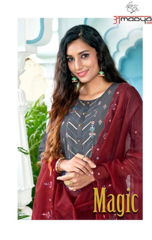 Amaaya Garments Presents Magic 1001 - 1006 Series Chinon Silk With Fancy Embroidery Work Event Wear Salwar Kameez Collection
