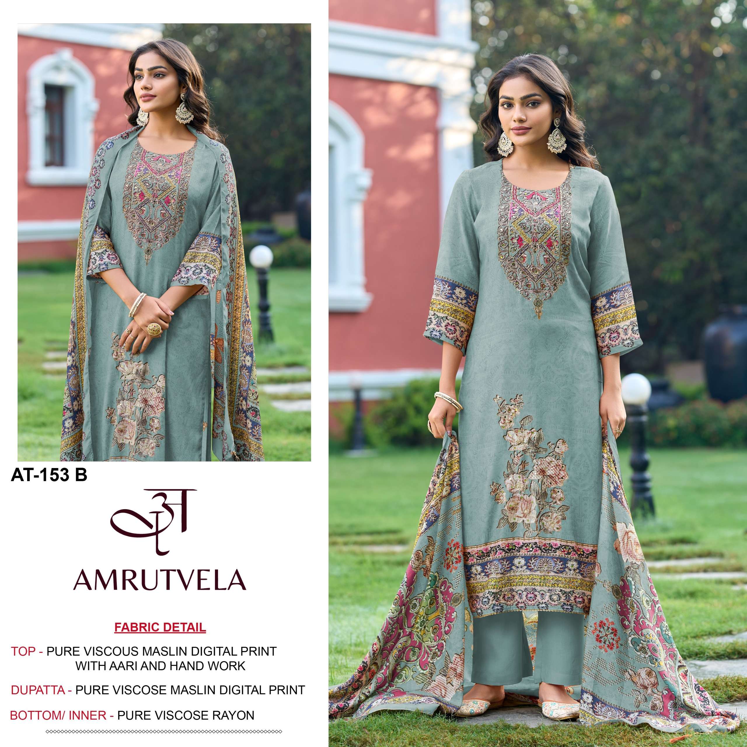 | Catalogue: | Amrutvela AT153 Pure Viscous Maslin Hand Work Pakistani Suit |