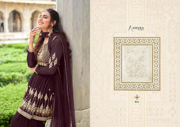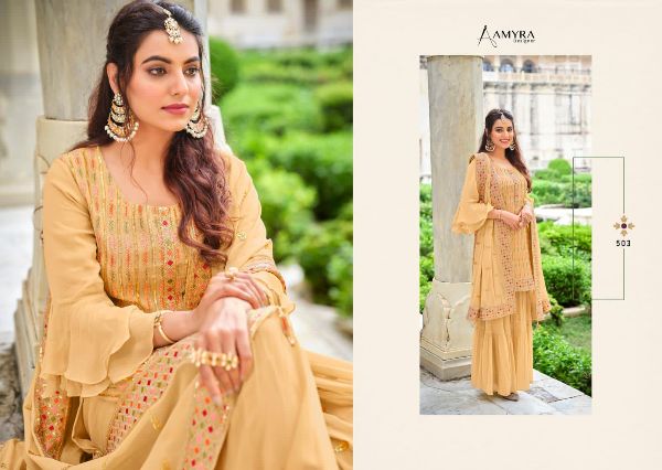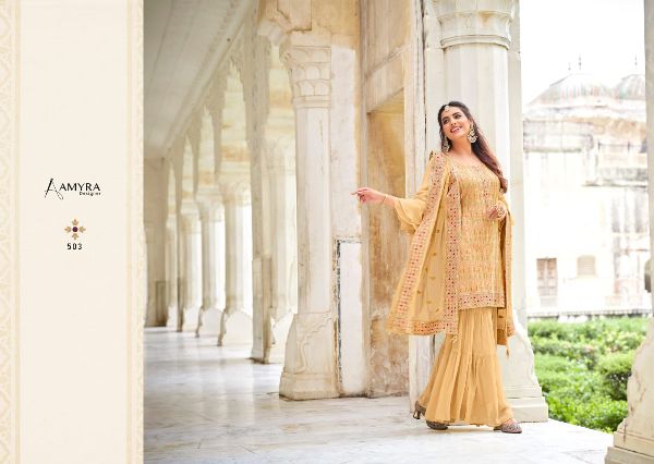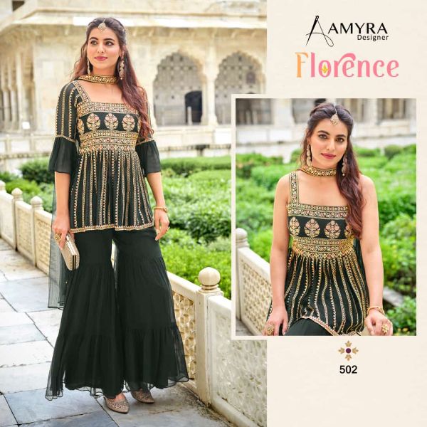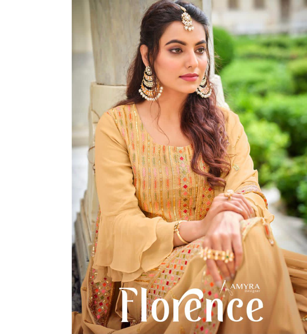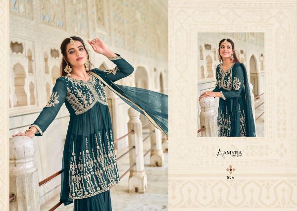Amyra Designer Presents Florence 501-504 Series Heavy Real Saudi Georgette With Heavy Exclusive Embroidery Work Fancy Salwar Suit Collection