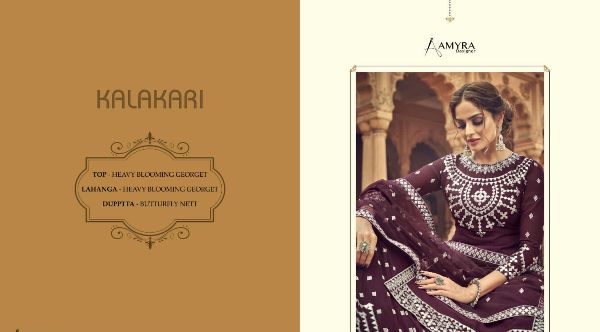 Amyra Designer Presents Kalakari 101 - 104 Series Heavy Blooming Real Georgette With Heavy Exclusive Mirror Embroidery Fancy Festival Wear Salwar Suit Collection