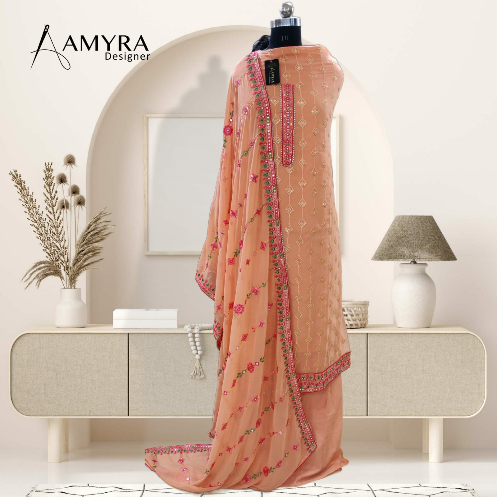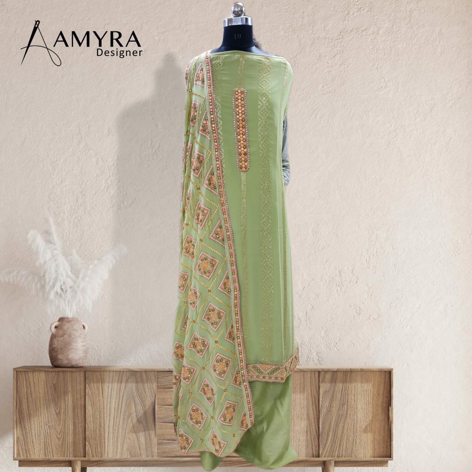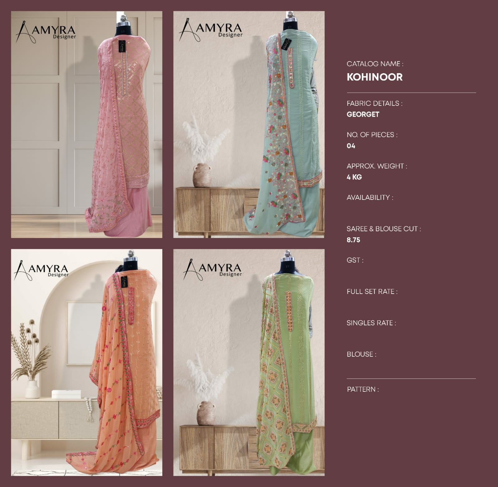 Amyra Designer Presents Kohinoor 001 - 004 Series Heavy Georgette With Heavy Exclusive Embroidery With Diamond Work Fancy Dress Material Collection