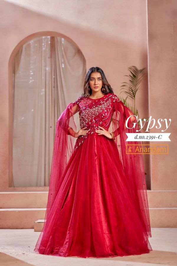 Anandam Presents Gypsy 2388a-2392c Series Net Party Wear Gown Collection