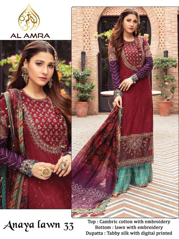 Anaya Lawn 33 Presents Cambric Cotton With Embroidery Work Pakistani Collection#1833