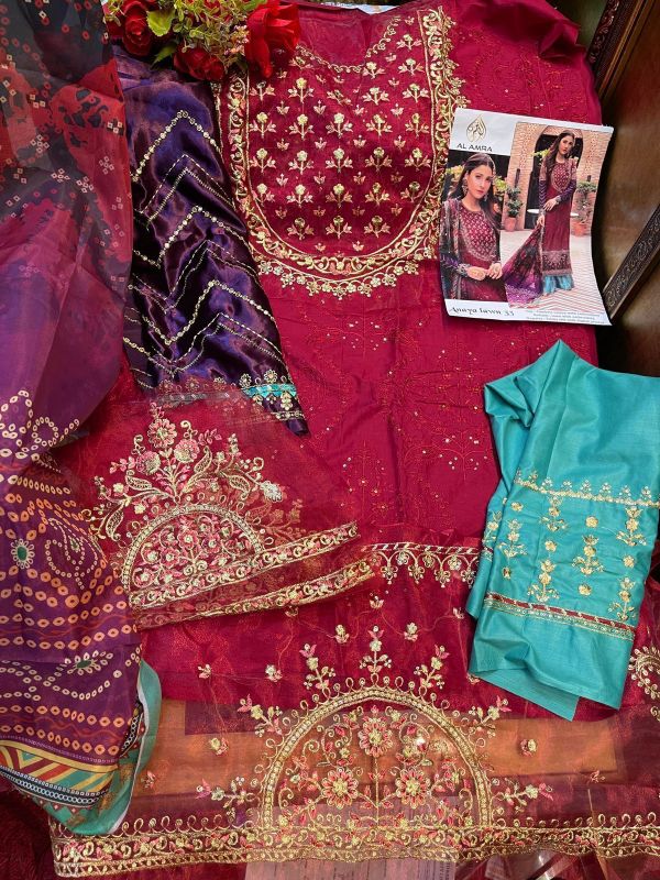 Latest Designer pakistani Collection. Exclusive with Foil & Thread Embroidery Work gives a Fashionable Look, High sensed style and luxury makes you ready for envious glazes and very rich & Royal in the Party, Function, Event etc.