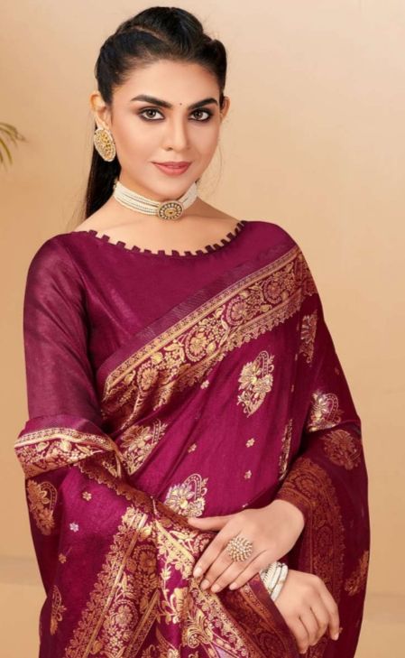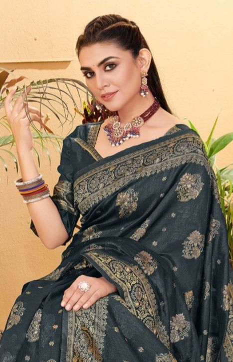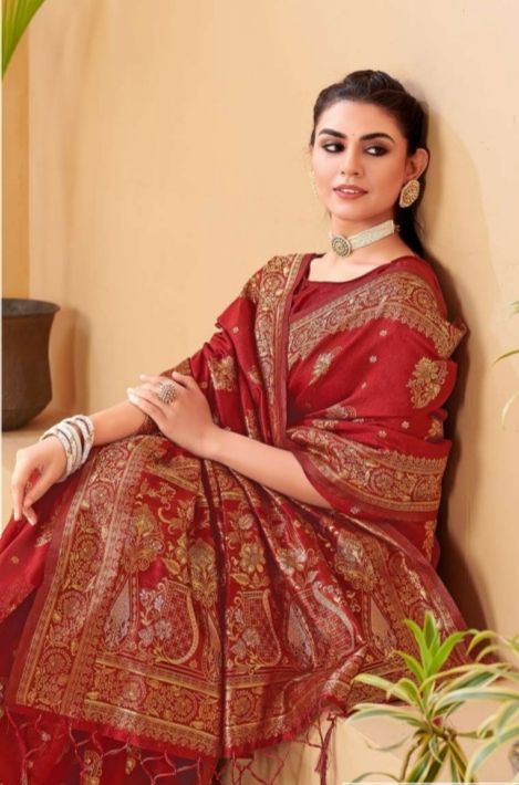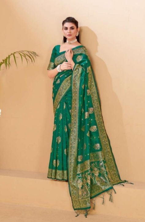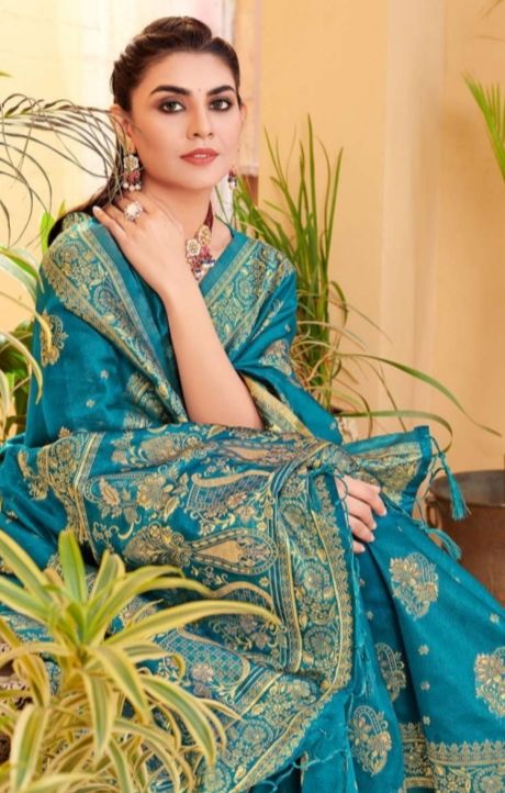 Latest Traditional Wear Saree Collection. Exclusive with Golden Zari Weaving Work gives a Fashionable Look, High sensed style and luxury makes you ready for envious glazes and very rich & Royal in the Party, Function, Event etc.