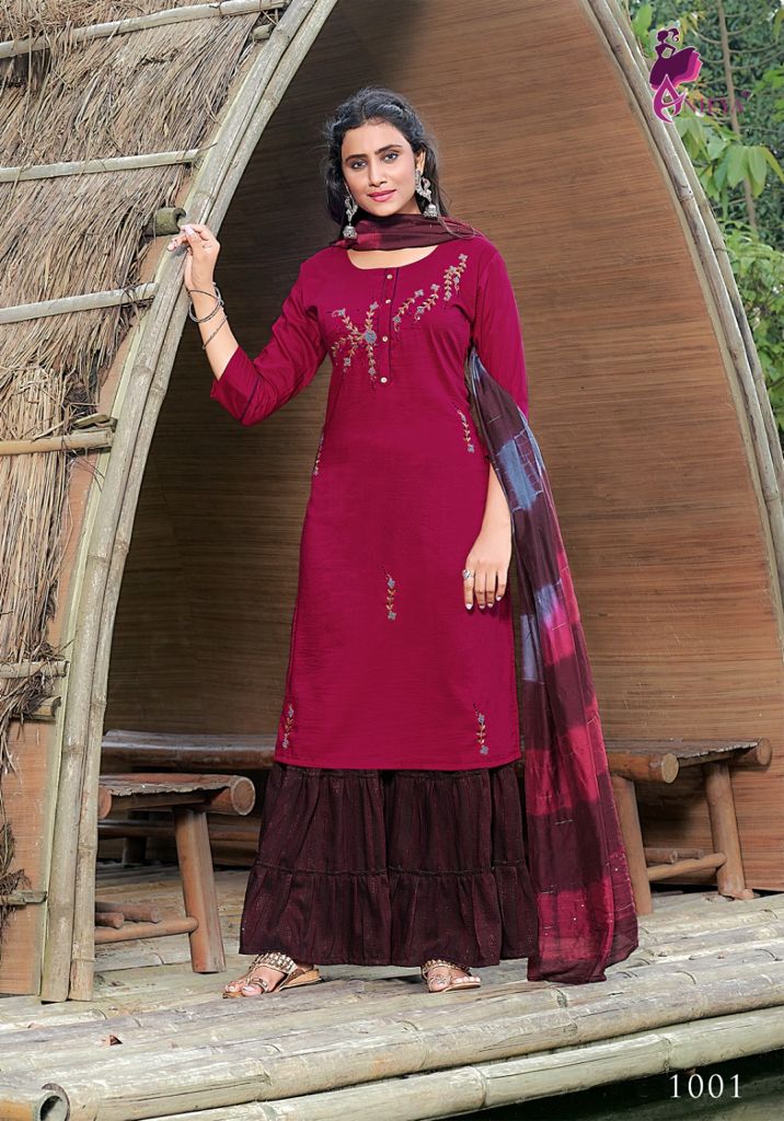 Anieya Presents Saborni 1001-1004 Series Pure Chinon With Kathli Work Fancy Salwar Suit Collection