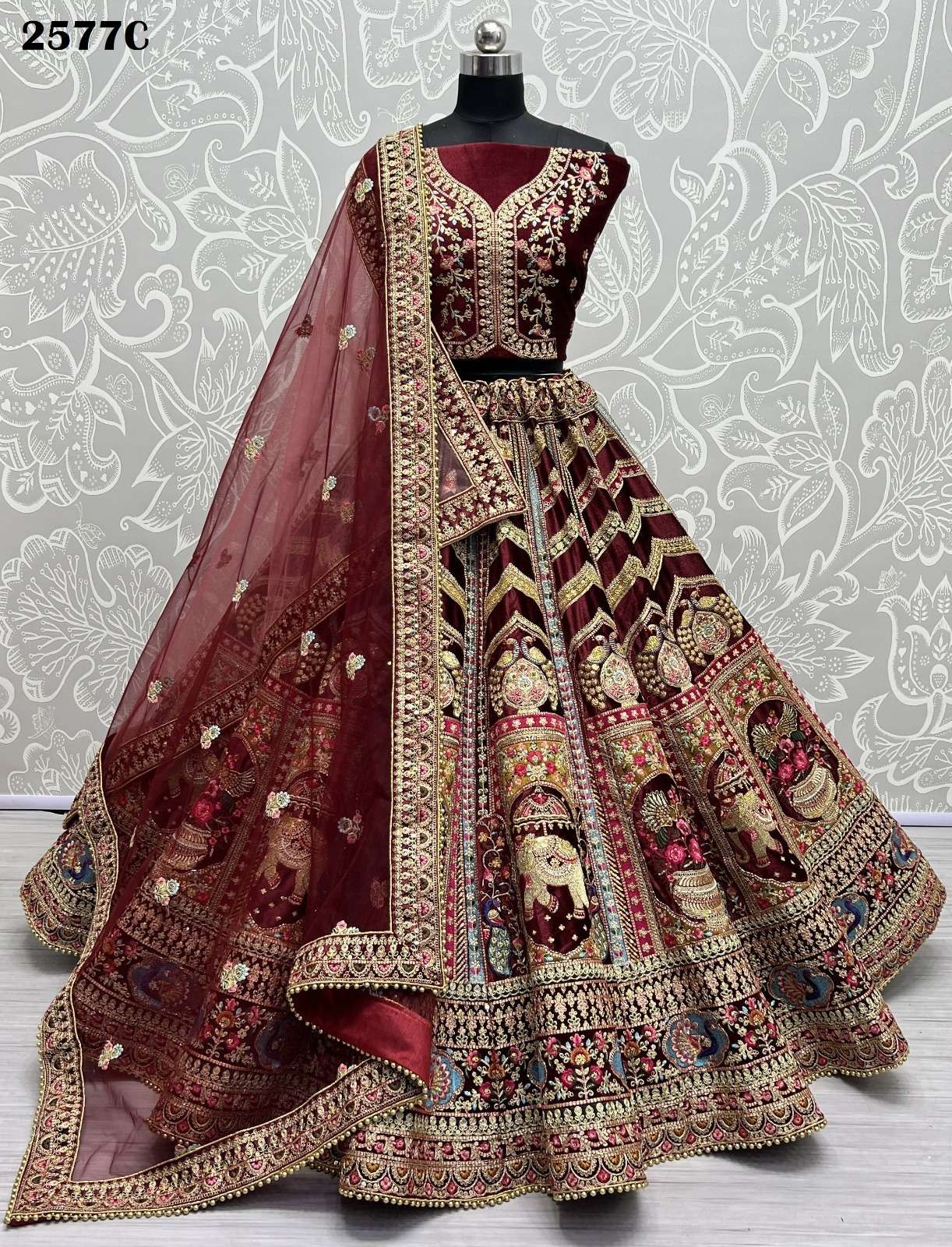 | Catalogue: | Anjani Arts 2577 B & C Beautiful Embroidered Velvet Designer Bridal Lehenga |