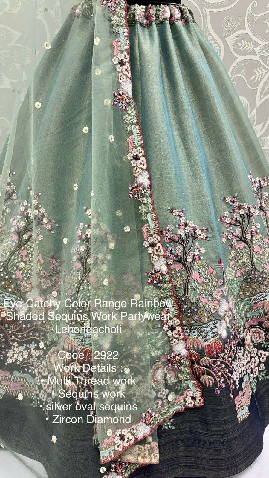 Eye-Catchy Color Range Rainbow Shaded Sequins Work Partywear Lehengacholi