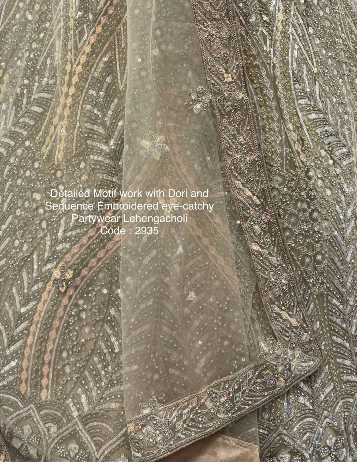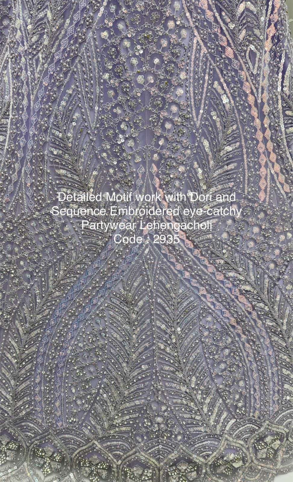 Detailed Motif work with Dori and Sequence Embroidered eye-catchy Partywear Lehengacholi