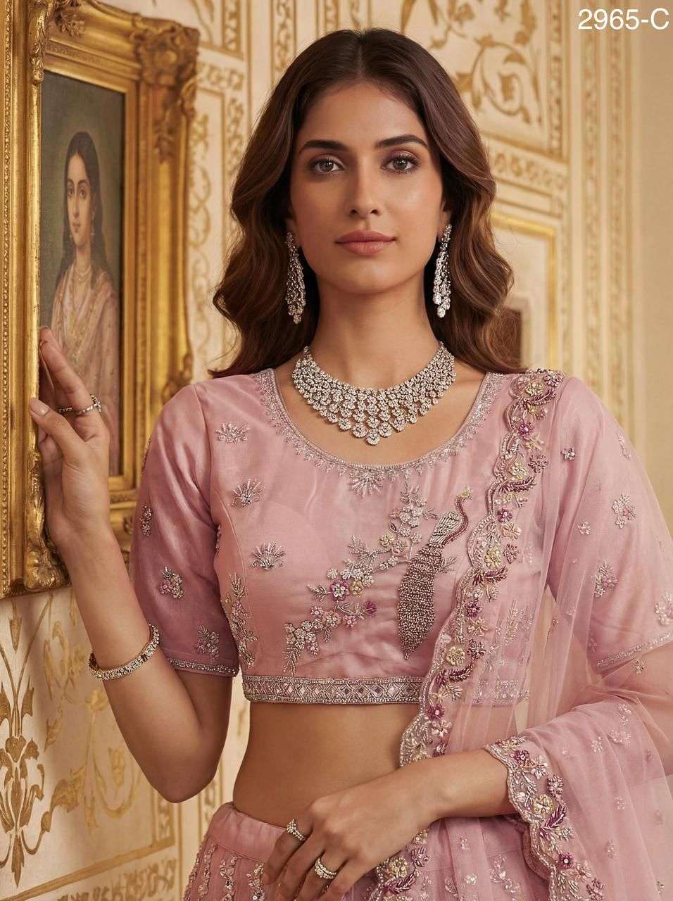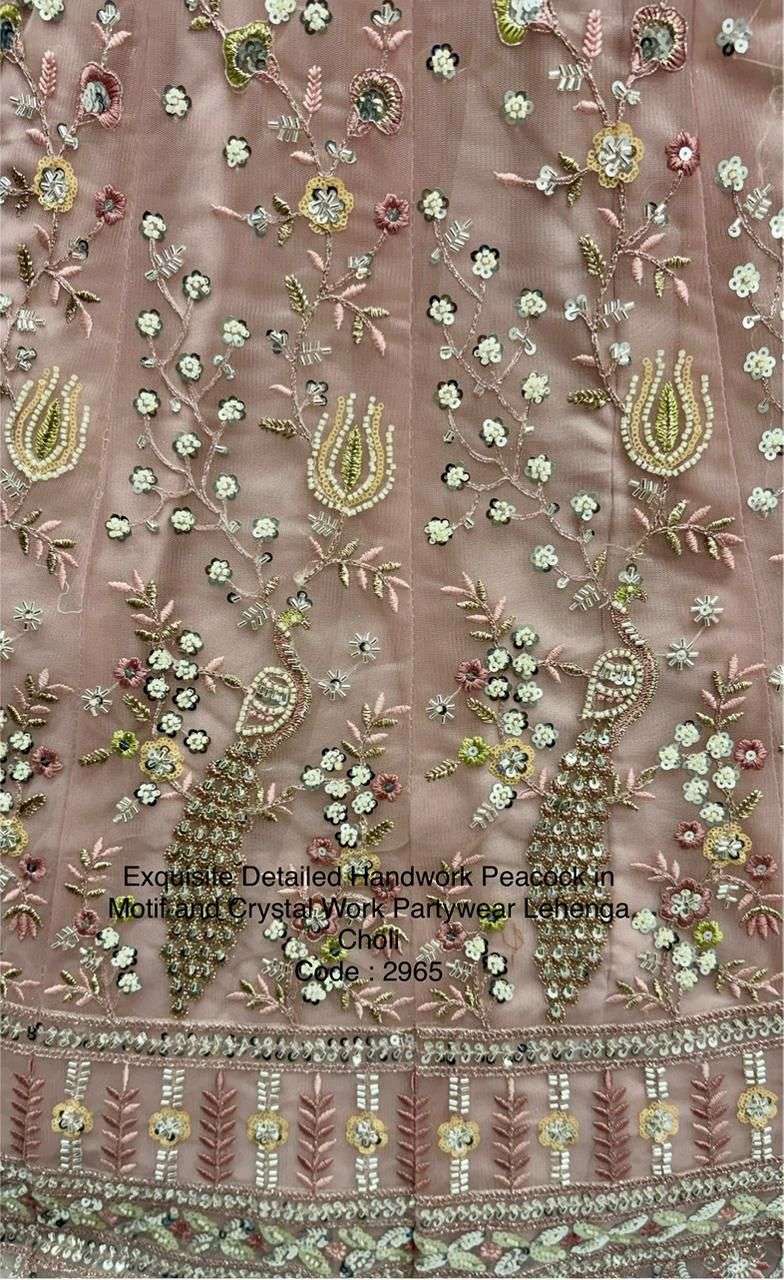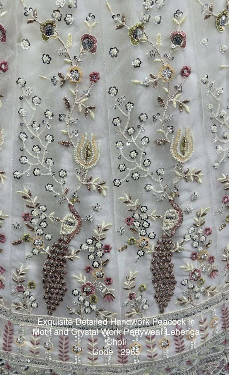 Exquisite Detailed Handwork Peacock in Motif and Crystal Work Partywear Lehenga Choli