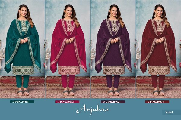 Anjubaa Vol- 1 10001-10004 Series Faux Georgette With Beautiful Work Salwar Suit Collection