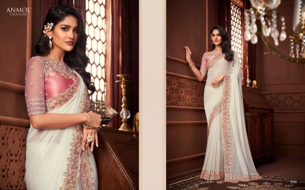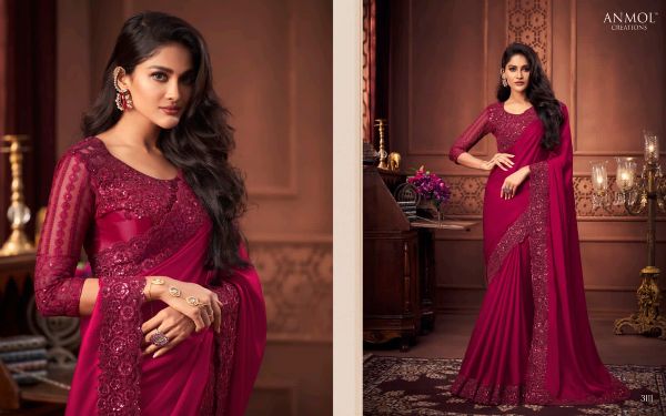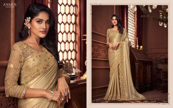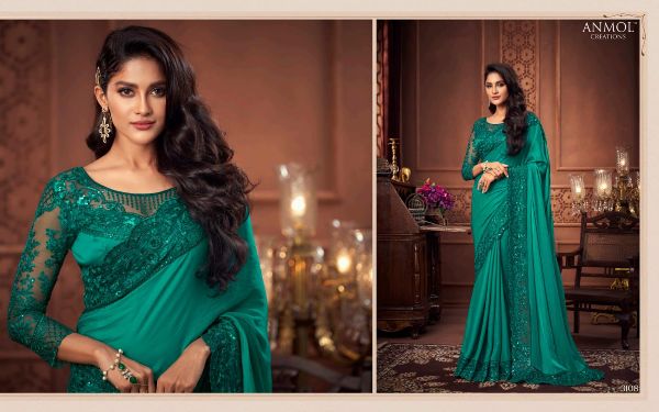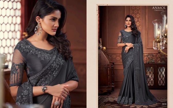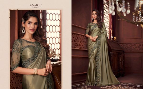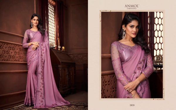 Anmol Presents Shades Vol-5 3101 - 3118 Series Satin And Chiffon Designer Work Party Wear Saree Collection Diwali Special