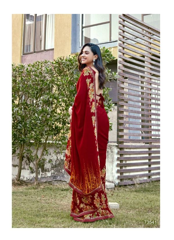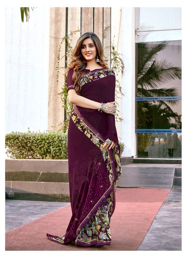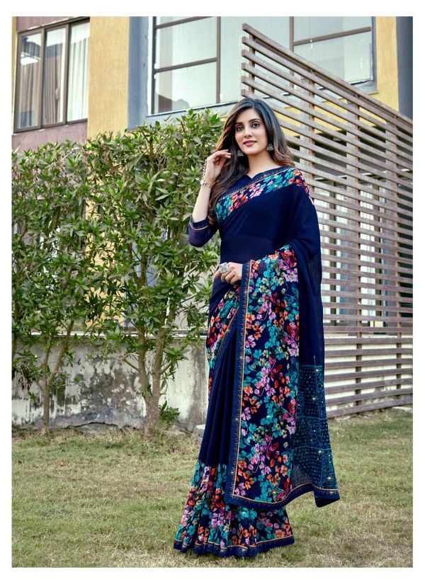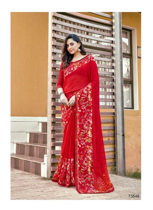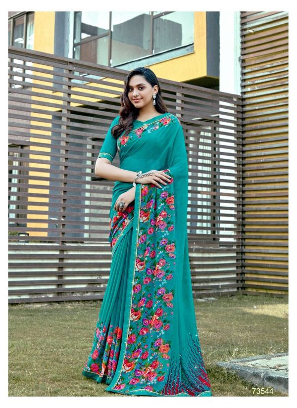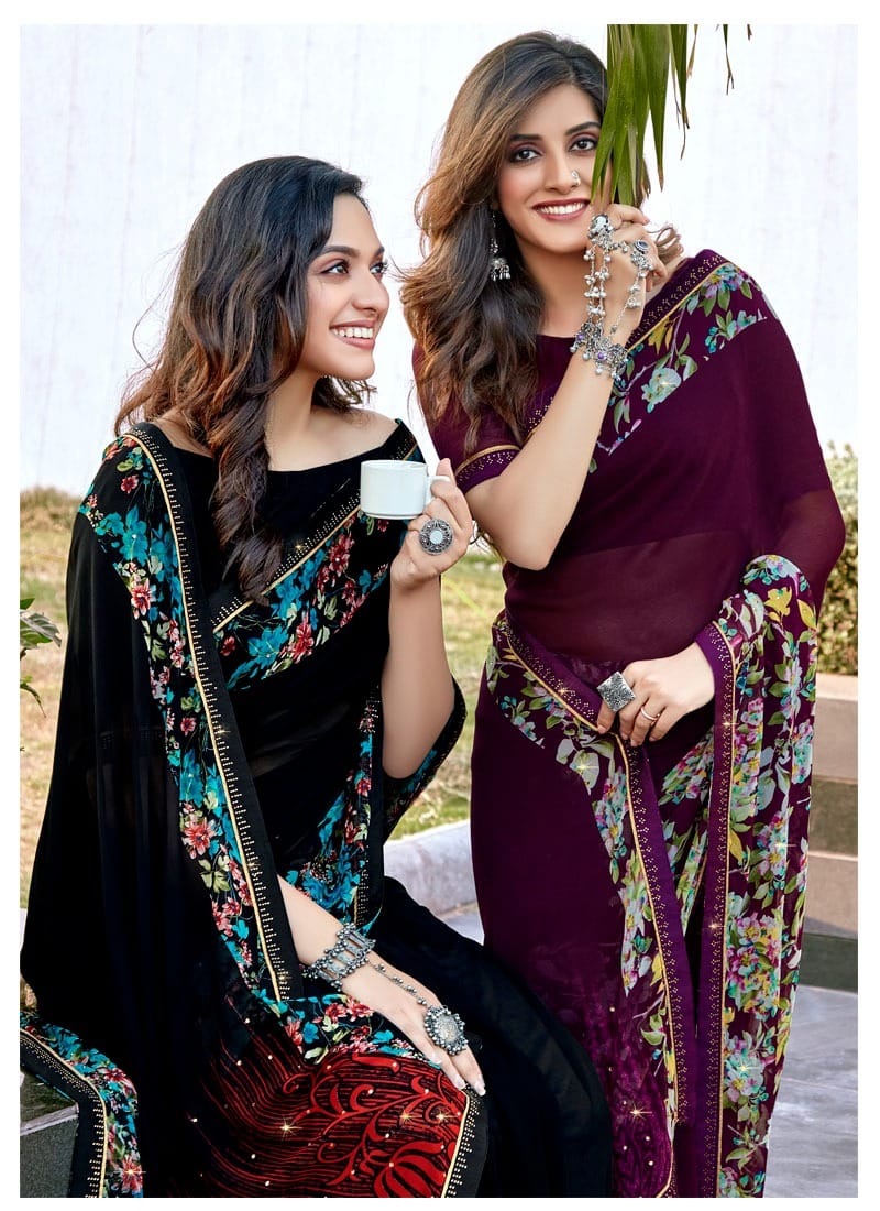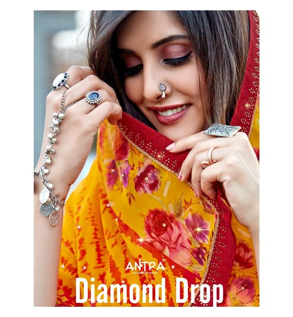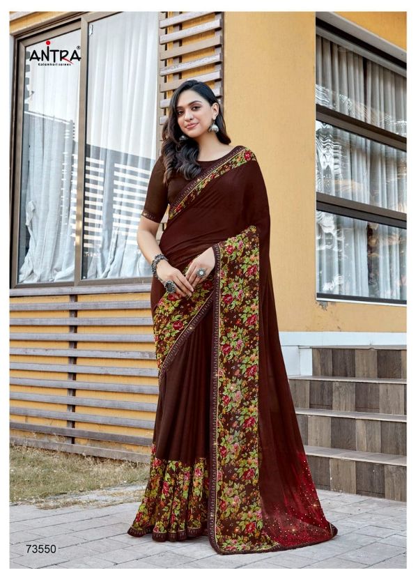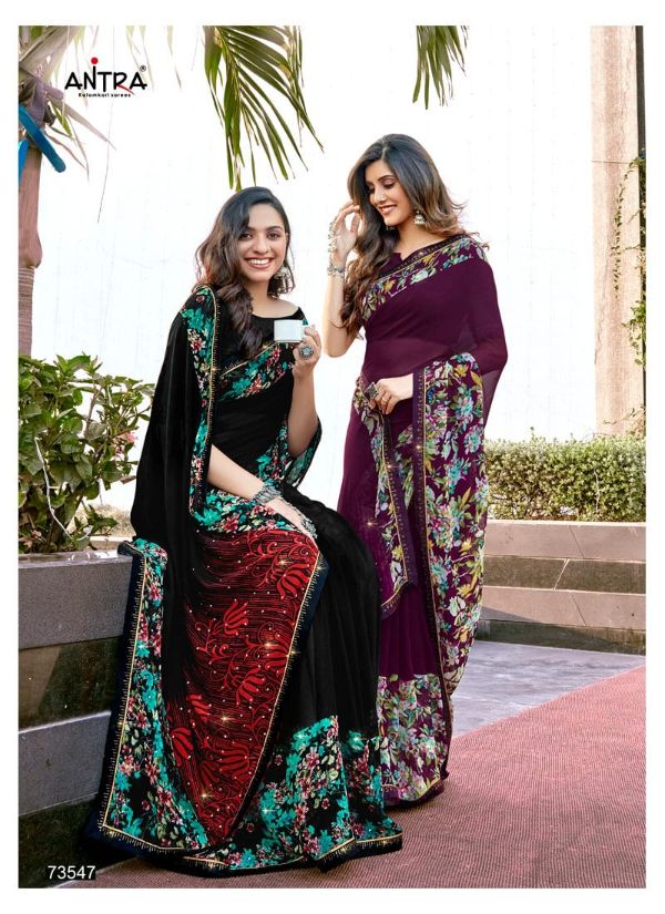 Antra Presents Diamond Drop 73541 - 73550 Series Fancy Weightless Fabric With Flower Print And Diamond On Lace Work Fancy Saree Collection